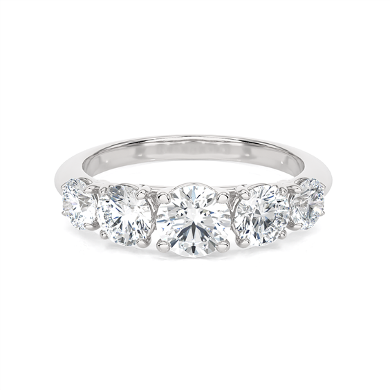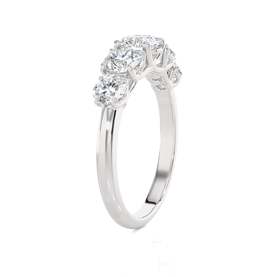 Questo anello realizzato in oro bianco 18 KT ZERO MINING incastona 1 diamante Lab Grown taglio brillante da 0.50 colore D Purezza VVS2 ct, 2 diamanti Lab Grown taglio brillante da 0.30 ct e 2 diamanti Lab Grown taglio brillante da 0.20 ct per una caratura totale di 1.50 ct