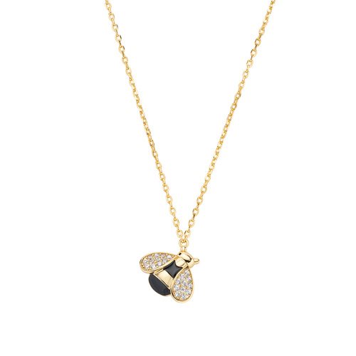 Collana Argento 925 smalto nero e zirconi bianchi - Dorato - Charm Ø 1,5 cm - Lunghezza 40 cm + 5 cm di allungo - corredato da shopper, scatola e garanzia
