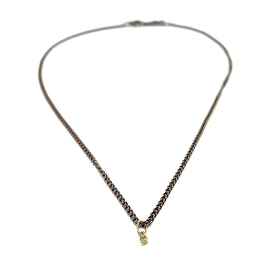 COLLANA IN ACCIAIO CON CASTONE IN ORO 18kt E DIAMANTE CT 0.03 COLORE BROWN. I GIOIELLI OROTECH NASCONO DA UNA SOLIDA ESPERIENZA ARTIGIANALE DEI SUOI FONDATORI E DIRIGENTI E DALL'UTILIZZO DI MACCHINARI INNOVATIVI E AVANTGARDE.