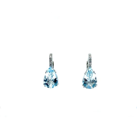 ORECCHINI IN ORO BIANCO 18kt CON ACQUAMATINA CT 6.0 E DIAMANTI CT 0.48.