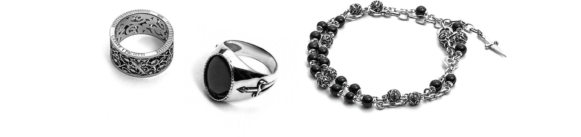 Nato come stilista di scarpe e vestiti, Cesare Paciotti ha saputo espandere il suo marchio grazie alla grande passione anticonformista per il design trasgressivo. I gioielli per uomo e donna racchiudono l’affidabilità e la qualità con l'inconfondibile tocco di classe alternativa che ha reso iconico il brand. Le creazioni Cesare Paciotti sono eleganti e contemporanee, particolarmente apprezzate dal mondo maschile per la presenza del pugnale, simbolo onnipresente nei gioielli del brand.