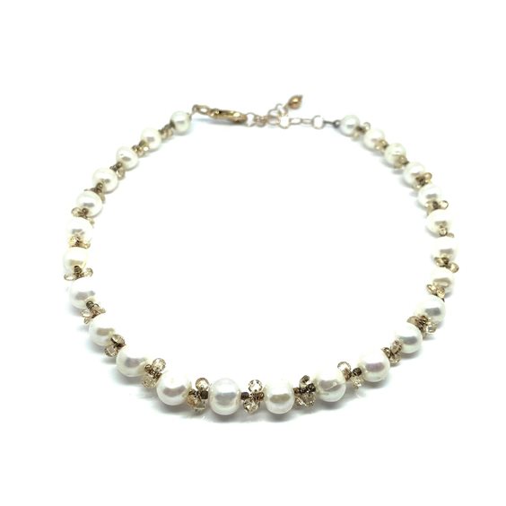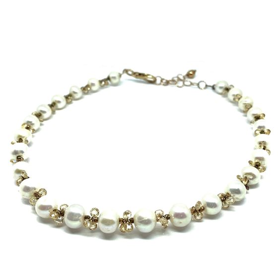 Collana in argento 925% con galvanica in oro rosa. Collana con perle naturali e zirconi.