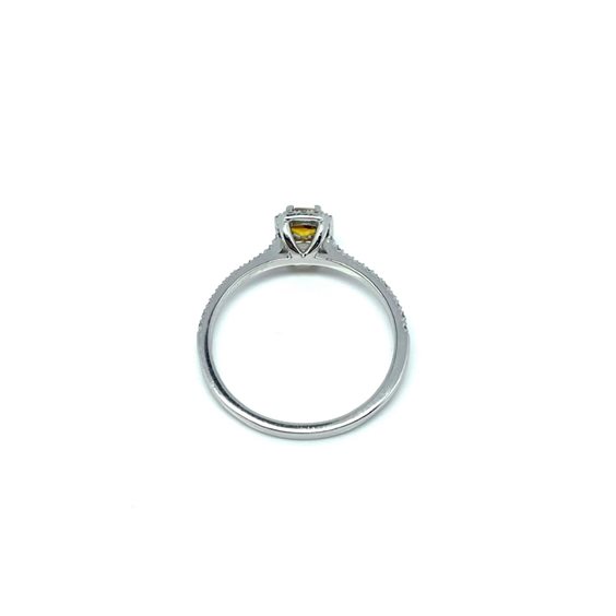 Anello in oro bianco 18kt con diamanti naturali ct totale 0.52 colore G purezza SI. Centrale con diamante fancy ct 0.34.
