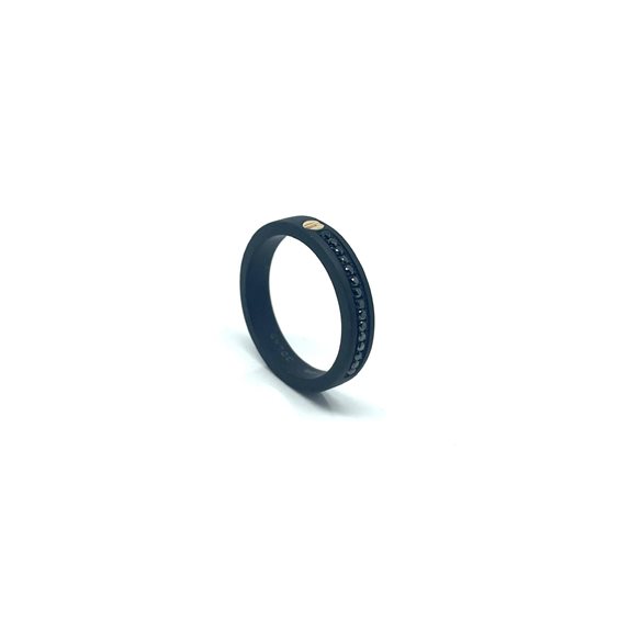 Anello in titanio con diamanti black ct totali 0.17 ed elemento in oro rosa 18kt.