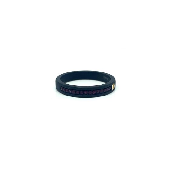 Anello in titanio con rubini ct totali 0.20 ed elemento in oro rosa 18kt.