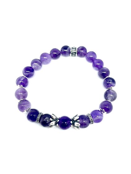 AMETISTA Agevola nel trovare la pacatezza necessaria per essere obiettivo, per guardare le cose dell'alto e ottenere la lucidità necessaria per fare le scelte corrette. Legata al VI° chakra, chiara visione. LA STORIA DI HETERIAH UN GIOIELLO UNICO E RICCO DI SIGNIFICATO Esiste il vuoto ed esiste il pieno, la luce ed il buio, la materia e lo spirito. Proprio partendo da questo principio nasce questa straordinaria linea di gioielli che vuole unire il monto eterico a quello materiale. Attraverso l’utilizzo di pietre naturali ed argento 925, fondendo la conoscenza della gemmologia a quella dell’energia sottile, vogliamo riportare armonia nella relazione con se stessi e con gli altri, migliorare lo stato emotivo e mostrare la bellezza che è insita in noi. Bracciale artigianale disponibile in tutte le misure, nelle note specifica la tua.