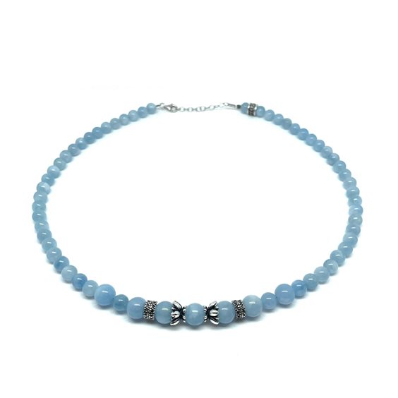 Girocollo artigianale Heteriah con elementi in argento 925% ed acquamarina.