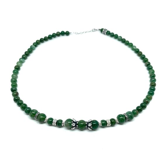 Girocollo artigianale Heteriah con elementi in argento 925% e con giada.