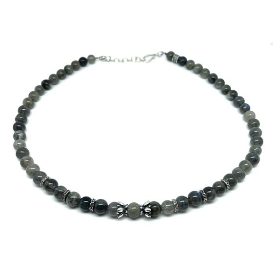 Collana artigianale Heteriah con elementi in argento 925% e labradorite.