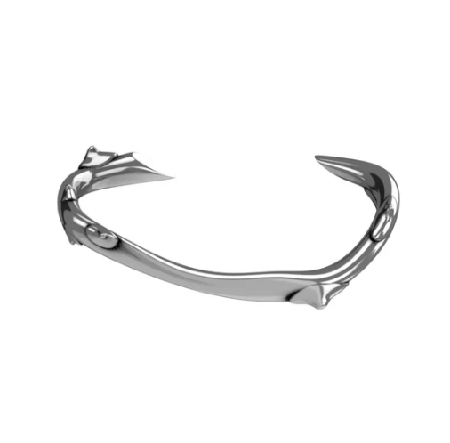 Bracciale rigido con forme fluide e punte accentuate. Struttura aperta per una vestibilità regolabile.