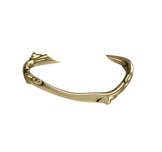 Bracciale rigido con forme fluide e punte accentuate. Struttura aperta per una vestibilità regolabile.