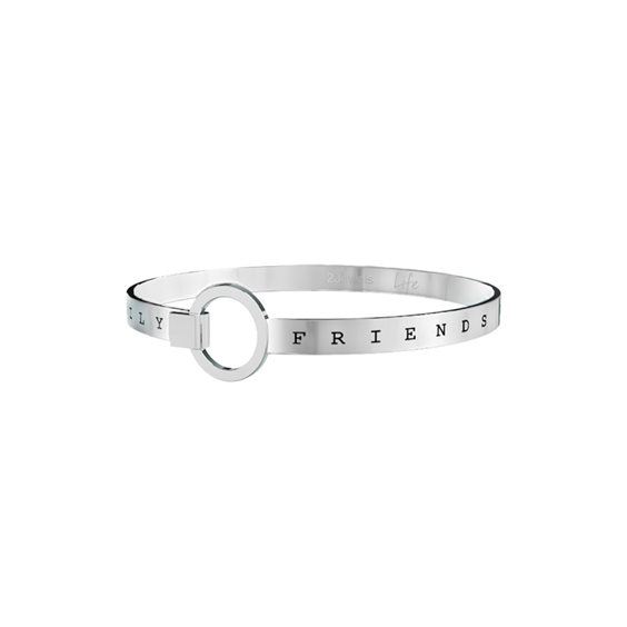 Bracciale rigido Kidult in acciaio a fascia con citazione “Friends become our chosen family” – Gli amici diventano la nostra famiglia per scelta.'