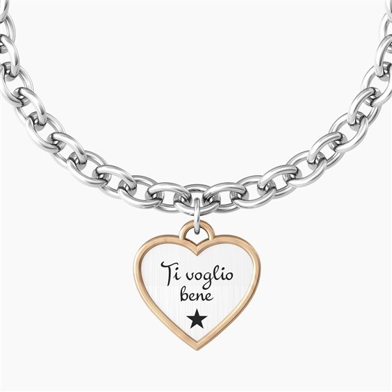 Bracciale Da Donna Di Kidult Della Collezione Family. Bracciale In Acciaio 316L Con Catena Rolò Misura Regolabile Sistema "Comfort Fit" (16 Cm / 17.5 Cm / 19 Cm ), Ciondolo Cuore In Acciaio Satinato E Bordo In Pvd Rosè Lucido. Scritta: Zia Ti Voglio Bene. Dimensioni: Maglia 6.40X5.40 Mm, Cuore 17X17.50 Mm, Cristalli Ø 1.50 Mm. Frase: Sei La Migliore Zia Che Potessi Desiderare. Ti Voglio Bene!.