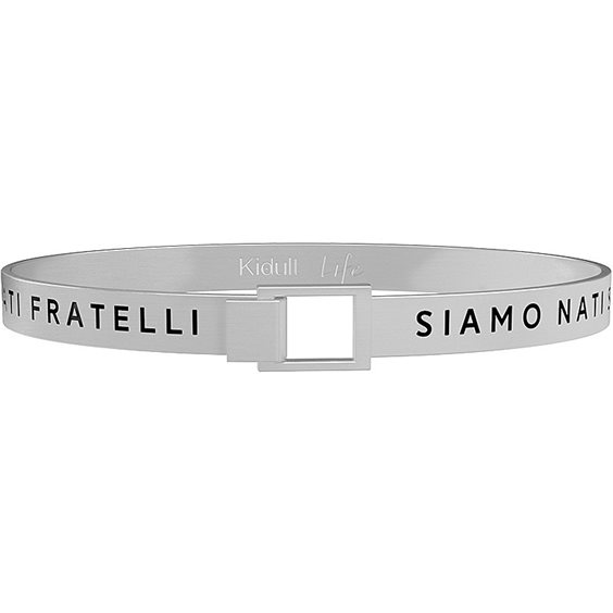 Bracciale Da Uomo Di Kidult Della Collezione Love. Bangle In Acciaio Satinato. Gioiello Con Incisione Smaltata . La Frase Incisa È: Siamo Nati Soli, Siamo Cresciuti Amici, Siamo Diventati Fratelli. Materiale: Acciaio 316L. Gioiello Con Chiusura Quadrata. Misura Standard, Diametri 6,5 Cm X 5,2 Cm. La Referenza È 731793 Questo bracciale verrà spedito con Scatola Originale Kidult
