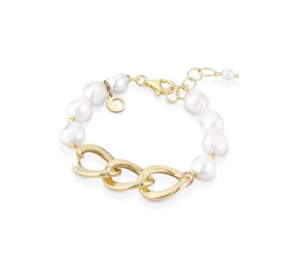 Bracc con chiusura in AG925 giallo, perle d'acqua dolce, 17,5 cm
