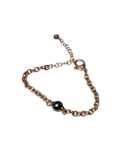 Bracciale unisex in argento bianco brunito e perla Tahiti. Abbinamento perfetto per un tocco glamour, sia per l’uomo che per la donna. Materiale: AG925 Colore argento: Brunito, Giallo, Rosa Tipologia perla: Tahiti Colore perla: Nero Lunghezza: 17cm + allungo Misura Perla: 9/10