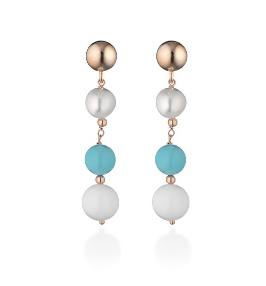 ORECCHINI IN ARGENTO CON PERLE E PASTA DI TURCHESE.