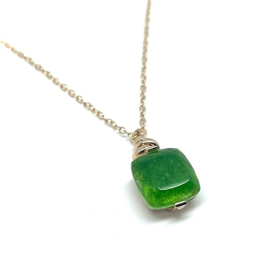 Collana in argento 925% con galvanica in oro rosa. Pendente in giada.
