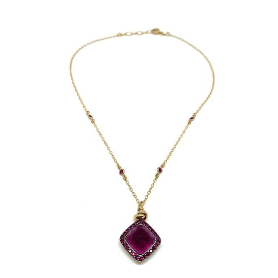 Collana in argento 925% con galvanica in oro rosa. Collana con giada e zirconi rosa.