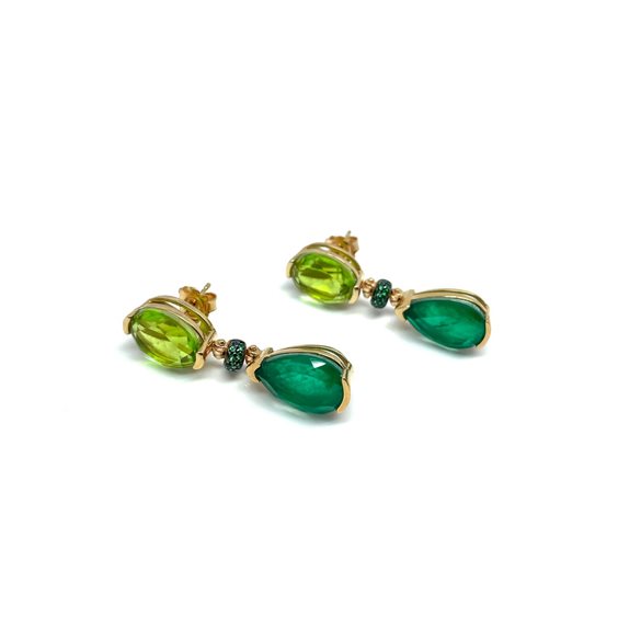 Orecchini in argento 925% con galvanica in oro rosa. Pendente in giada.