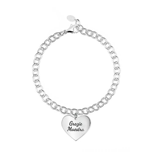Bracciale in argento 925/°°° e Smalto a fomra di cuore con inciso "grazie maestra" Lunghezza cm 19