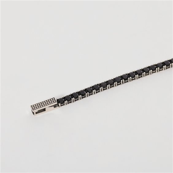 Bracciale tennis argento 925/°°° rodiato e zirconi neri. Chiusura pinza a molla. Misura cm 19.