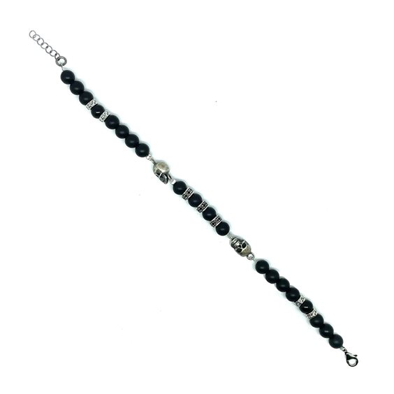 Bracciale artigianale Madame Black con elementi in argento 925%, zirconi ed onice nero opaco e lucido. Made in Italy.