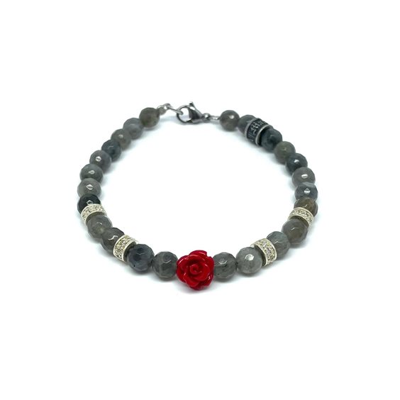 BRACCIALE ARTIGIANALE MADAME BLACK CON ELEMENTI IN ARGENTO 925% E LABRADORITE SFACCETTATA.