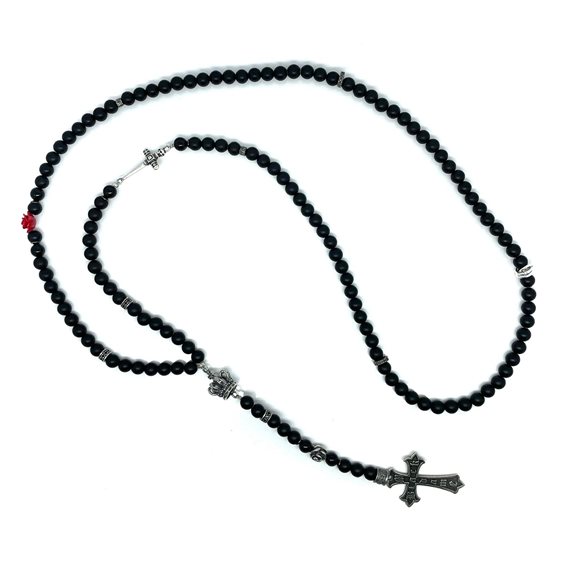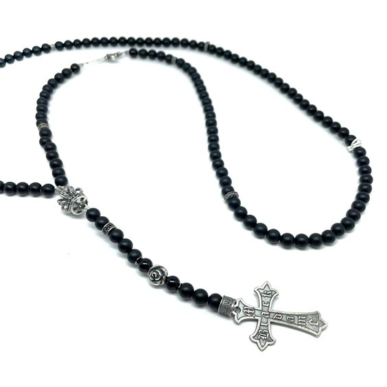 Collana artigianale Madame Black con elementi in argento 925%, ed onice nero opaco.