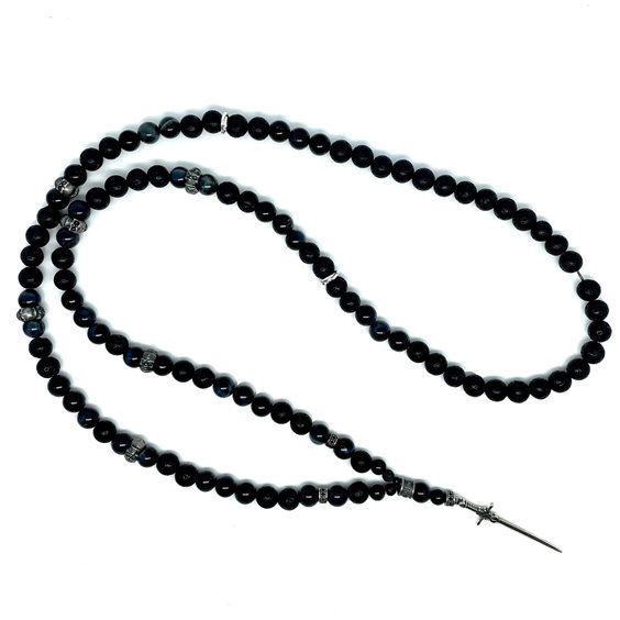 Collana artigianale Madame Black con elementi in argento 925%, pietra lavica nera e .