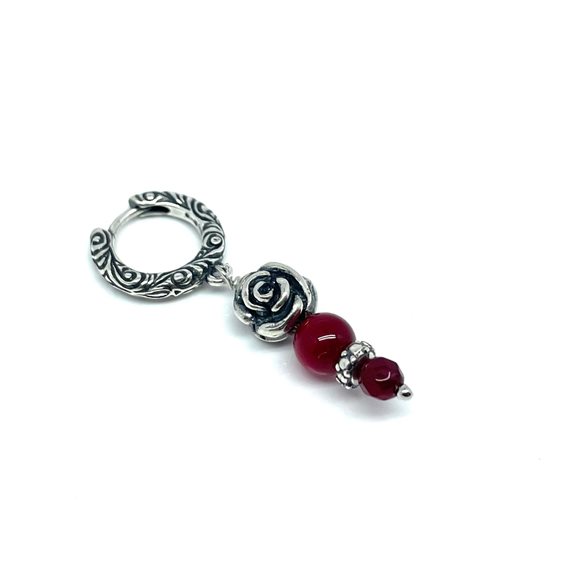 MONO ORECCHINO ARTIGIANALE FIRMATO MADAME BLACK IN ARGENTO 925% CON PENDENTE IN QUARZO CILIEGIA.