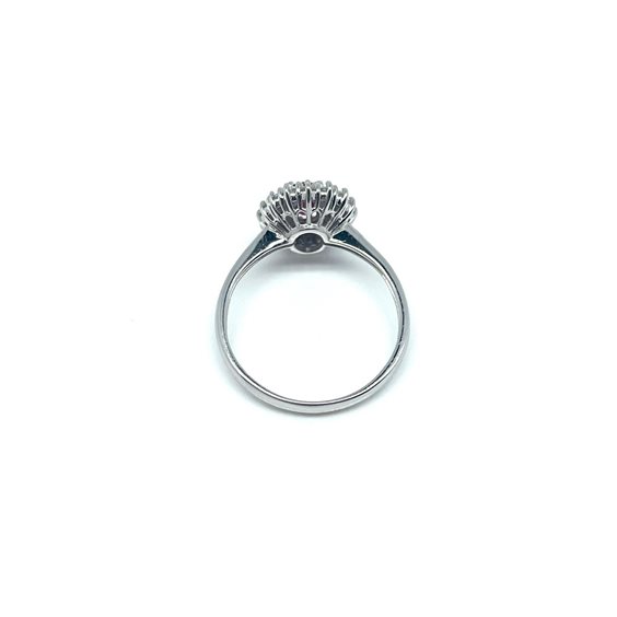 Anello in oro bianco 18kt con rubino centrale ct 0.55 e contorno di diamanti ct 0.37 colore G purezza VS.