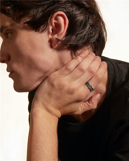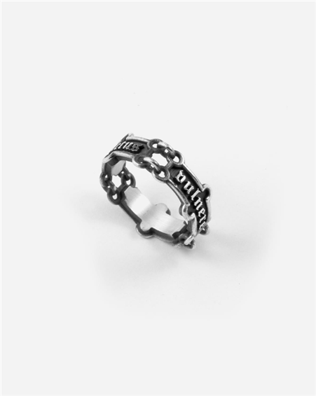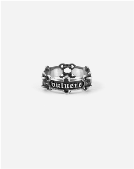 “Sconfitto dalla ferita dell’amore” è la citazione latina riportata in stile gotico dalla quale l’anello prende il nome. Con piccoli inserti a catena, il gioiello ricorda come le delusioni d’amore, invece che dividerci, ci legano ancora di più alla nostra essenza. La Fede Devictus Vulnere Amoris fa parte della Collezione New Order ed è realizzata in Argento 925. Come tutti i gioielli Nove25 anche questo Anello viene progettato e lavorato in Italia mediante l'utilizzo delle più moderne tecnologie e rifinito a mano per garantirne il massimo dettaglio e la più elevata qualità. Questo gioiello viene proposto con una finitura Brunito Lucido.