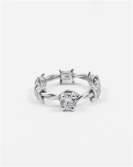 Dagli intrecci del classico filo spinato di Nove25, un luminoso solitario sboccia come una rosa bagnata dalla rugiada. La FEDINA FILO SPINATO SOLITARIO in rodio lucido ricorda come, anche dalle difficoltà, possa nascere qualcosa di bello e prezioso. L'Anello Solitario Filo Spinato fa parte della Collezione Filo Spinato ed è realizzato in Argento 925. Come tutti i gioielli Nove25 anche questo Anello viene progettato e lavorato in Italia mediante l'utilizzo delle più moderne tecnologie e rifinito a mano per garantirne il massimo dettaglio e la più elevata qualità. Questo gioiello viene proposto con una finitura Rodio Lucido