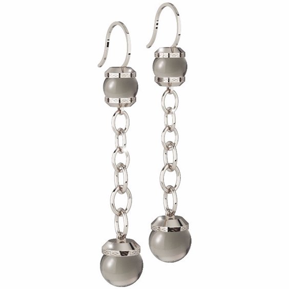 Orecchini Rebecca in bronzo placcato oro e pietre della Collezione Hollywood Stone. Orecchini pendenti a monachella misura 5,5 x 1 cm con catena alle cui estremità sono incastonate pietre idrotermali di grandezza scalare con forma sferica.