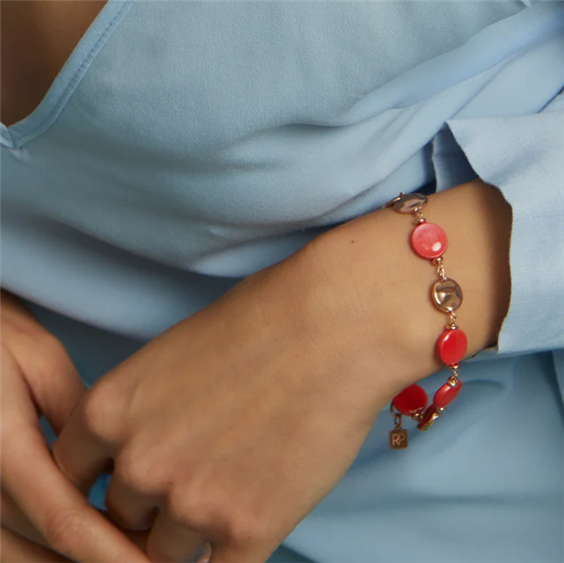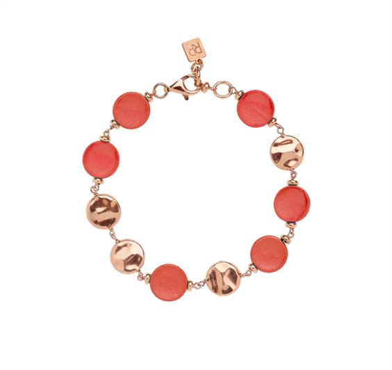 Bracciale in argento 925 placcato oro rosé e legno di recupero smaltato a mano. Lunghezza regolabile da 18 a 19,5 cm
