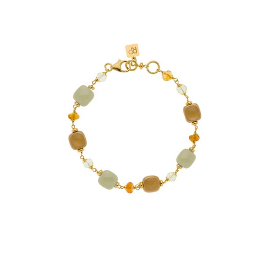 Girocollo realizzato a mano in argento 925 placcato oro giallo, legno laccato e smaltato e un mix di Citrino ed Ametista Verde Lunghezza da 17,5 a 20cm