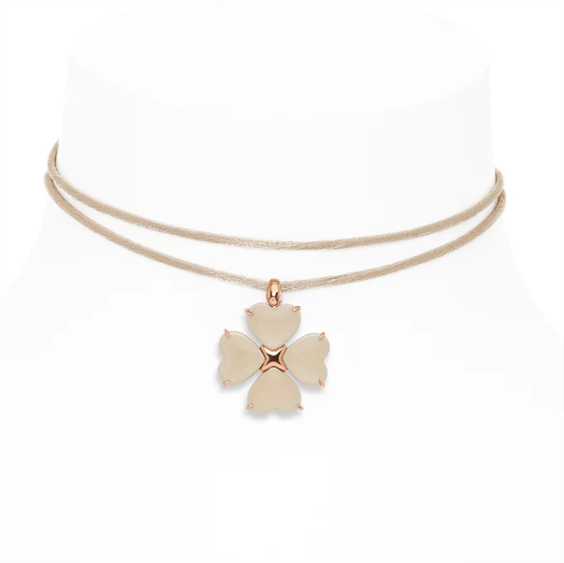 Girocollo in argento 925 placcato oro rosé e legno d'ulivo di recupero laccato e smaltato a mano. Cordino in Seta. Lunghezza cm 90cm + ciondolo 2,5 cm
