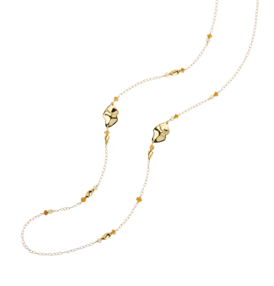 Collana in argento 925 placcato oro giallo e topazi citrino Lunghezza 98cm *Per prenderti cura al meglio dei tuoi gioielli ROSSOPREZIOSO e preservarne l’integrità ti invitiamo a evitare l’uso di profumi direttamente sul gioiello e l'immersione prolungata in acqua.