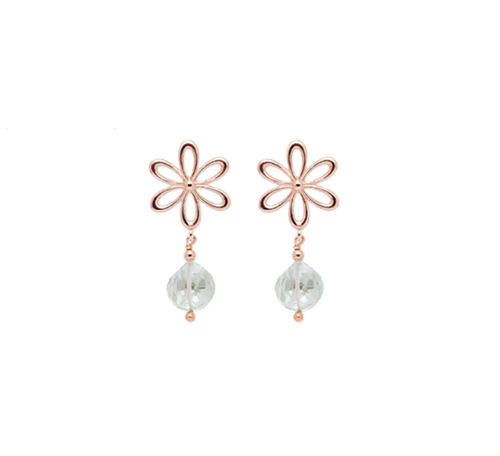 Orecchini in argento 925 placcato oro rosé e pietre naturali: ametiste verdi. Lunghezza 3 cm