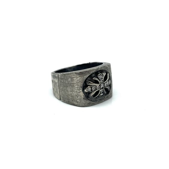 Anello artigianale Sacramore in argento 925% con diamanti.