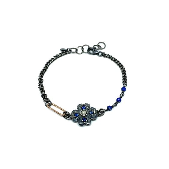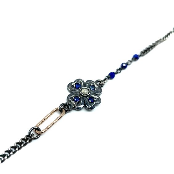 BRACCIALE ARTIGIANALE SACRAMORE IN ARGENTO 925% CON ZAFFIRI E DIAMANTE TAGLIO ANTICO. LUNGHEZZA BRACCIALE 16.5+2.5cm.