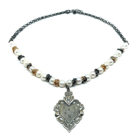 Girocollo artigianale Sacramore in argento 925% con perle naturali.