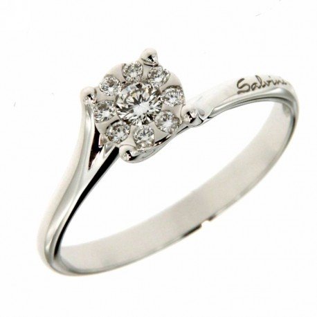 Anello Salvini in oro bianco lucido con diamante centrale contornato da una fila di diamanti taglio brillante ct 0.21 G/H. Misura 13 modificabile. Dimensioni testa anello 6.1 x 6.1 mm. Garanzia e Certificato di Autenticità Salvini e scatola originale.