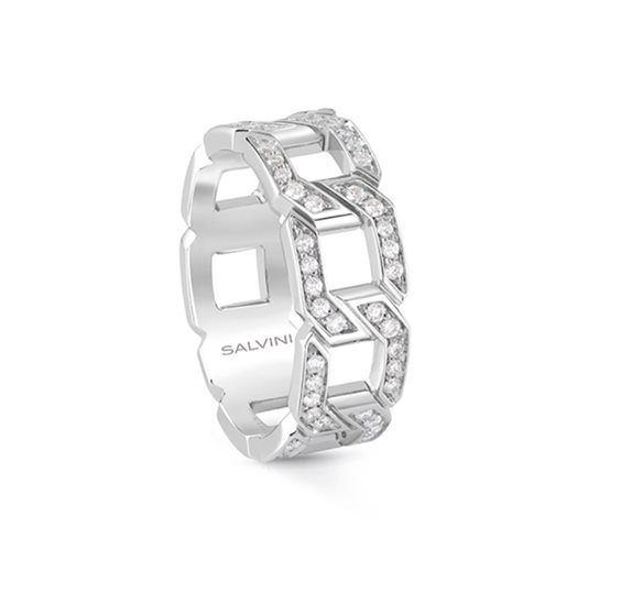 Anello della collezione Link di mis.12-14 in oro bianco e diamanti a taglio rotondo di caratura 0,4 di colore GH.