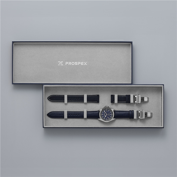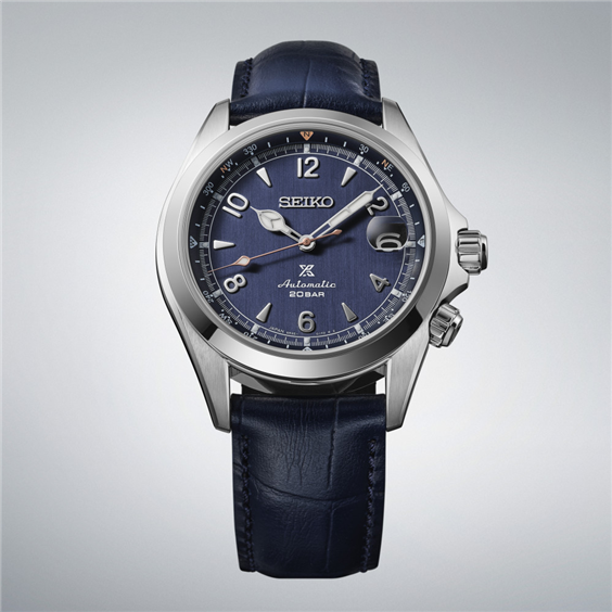 Orologio PROSPEX Alpinist ~ Automatico 3 sfere Questa inedita edizione limitata Europa rende omaggio al primo orologio sportivo Seiko del 1959, reinterpretato per gli esploratori moderni. Il tema cromatico si ispira al cielo notturno sopra il Monte Cervino. Il quadrante blu intenso con una sottile struttura verticale ricorda le notti limpide in montagna. Con due cinturini, uno in pelle di vitello blu navy e l'altro in nylon, questo Alpinist si adatta a tutti gli stili.