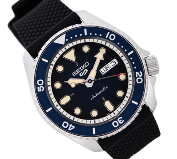 Semplicità e comfort nei modelli Seiko 5 sport. Suits Diametro di cassa 42.5mm. spessore ridotto al minimo per contenere lo spettacolare movimento 4R36, 24 rubini 21600 alternanze ora,riserva di carica di oltre 41ore.lunetta in acciaio girevole unidirezionale con trattamento IP colorato blu, perfetto in ogni occasione, adatto a qualsiasi polso. D, puoi divertirti ad applicare bracciali in gomma, acciaio o tessuto "nato", -multi resistente. Fondello avvitato con vista movimento, vetro Hardlex ad alta resistenza, indici e sfere con lumibrite per una visione notturna. Corona a pressione con funzioni carica/cambio data/fermo macchina. Seiko 5 sport: le cinque caratteristiche della linea: movimento automatico/visualizzazione giorno e data/wr. 10bar/corona a ore 4/cassa e bracciale costruiti per resistere e durare.