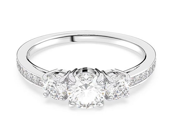 Adatta ad ogni occasione, la famiglia Stilla Attract evoca una disinvolta eleganza. Questo anello classico irradia una luce straordinaria grazie ai cristalli trasparenti e ad un trio di Swarovski Zirconia dal taglio di precisione montati su una brillante finitura color argento. Un bellissimo gioiello per tutti i giorni che può essere facilmente abbinato ad altri pezzi della famiglia Stilla Attract.