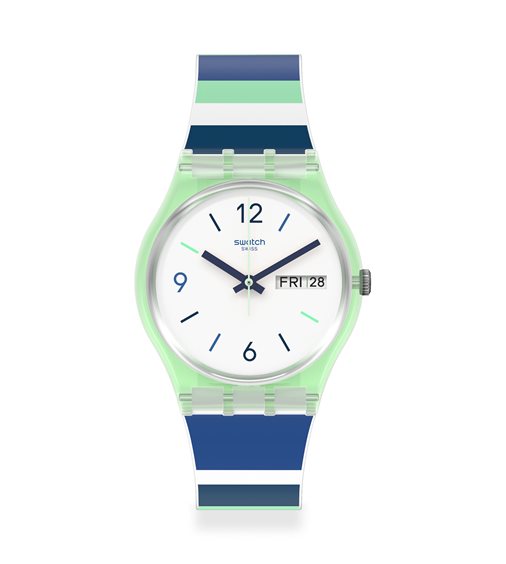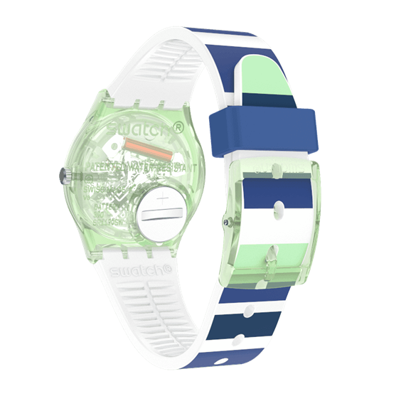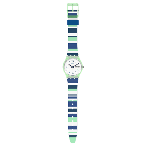 Che forma vedi nelle nuvole? SKY ZEBRA (GG711) dipinge il cielo con righe orizzontali in blu, verde chiaro, nero e bianco. Nel quadrante bianco puoi mettere tutta la tua immaginazione.