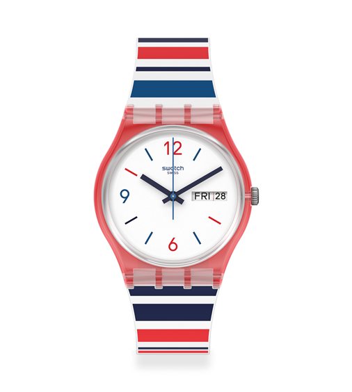 La vita è più bella al mare con le tonalità rosse, blu e blu navy di SEA BARCODE (GR712). Il datario con giorno e numero ti aiuta a non perdere il senso del tempo durante le giornate spensierate in spiaggia.